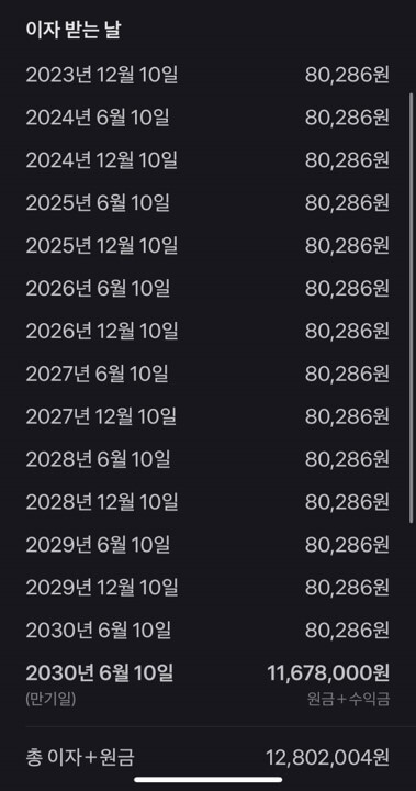 5. 바로아래 "받을 수익금 자세히 보기"를 누르면, 몇월 몇일 이자가 들어오고 이자와 원금은 얼마, 세금은 얼마, 세금을 제외한 최후 수익금은 얼마인지까지 한번에 확인하실 수 있어 간편합니다.