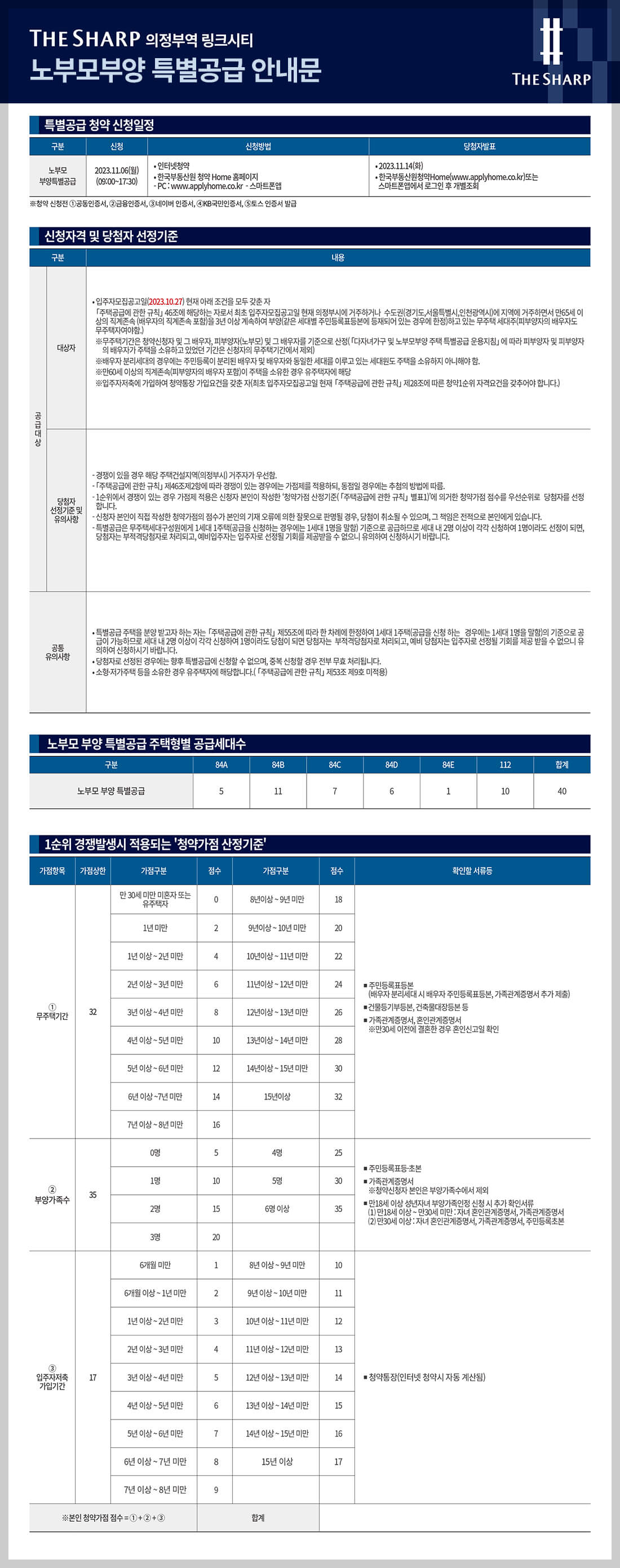 분양 일정은 11월 6일부터 시작하여 7일과 8일에 청약 접수를 받습니다. 당첨자 발표는 11월 14일이며, 정당계약은 11월 27일부터 30일까지 4일간 진행될 예정입니다.