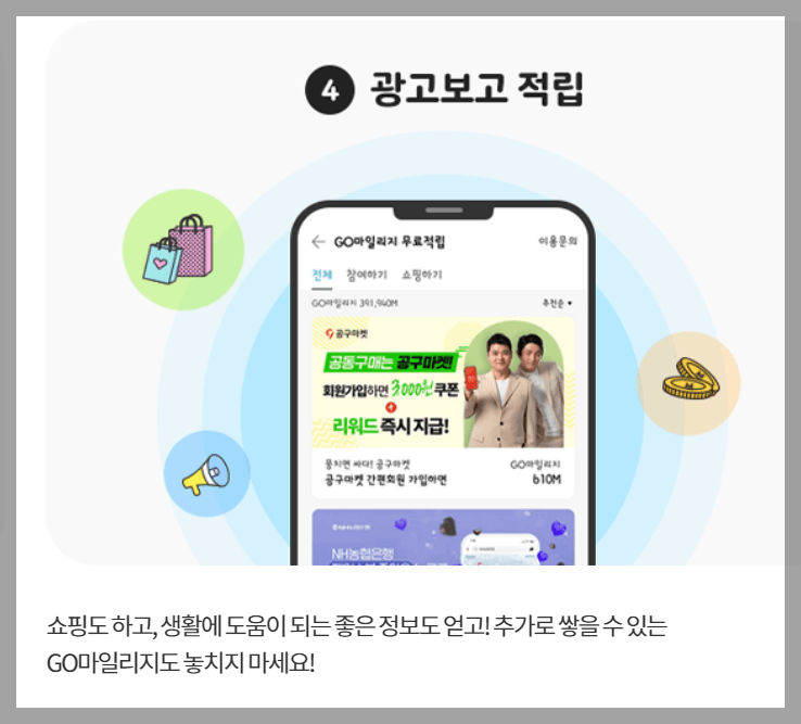 3. 화면에서 마일리지 혜택이 쭉 나오면 화면을 터치합니다.