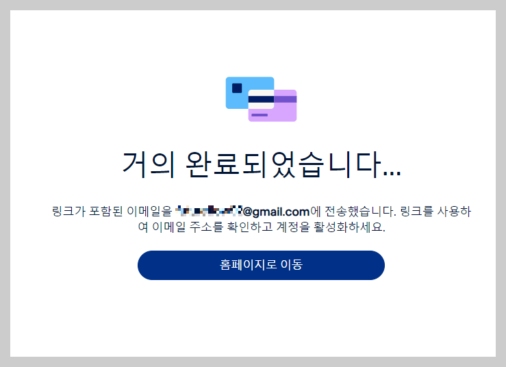 7. 저는 확인 이메일이 보이지 않아 홈페이지로 이동 버튼을 눌러 재신청(링크 다시 보내기) 했습니다.