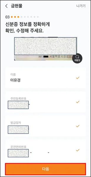 8. 가지고 계신 신분증을 통해 본인 확인을 한번 더 진행합니다.
